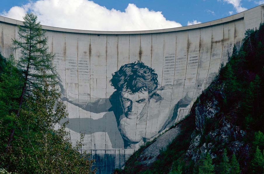 The dam was supposed to provide 10% of France’s electricity. Ironically however, France soon joined the nuclear age and the dam was never used. Interestingly the lake is drained every 10 years, and one is able to walk around the remains of the village. The last time the lake was drained was in the spring of 2000. The lake is now used to charge up a 'battery' to store energy that would provide the ski resort with power, if it's existing supply should fail. The dam has become a landmark for Tignes and now has a huge figure of Hercules painted on its walls, known as the Giant of Tignes.